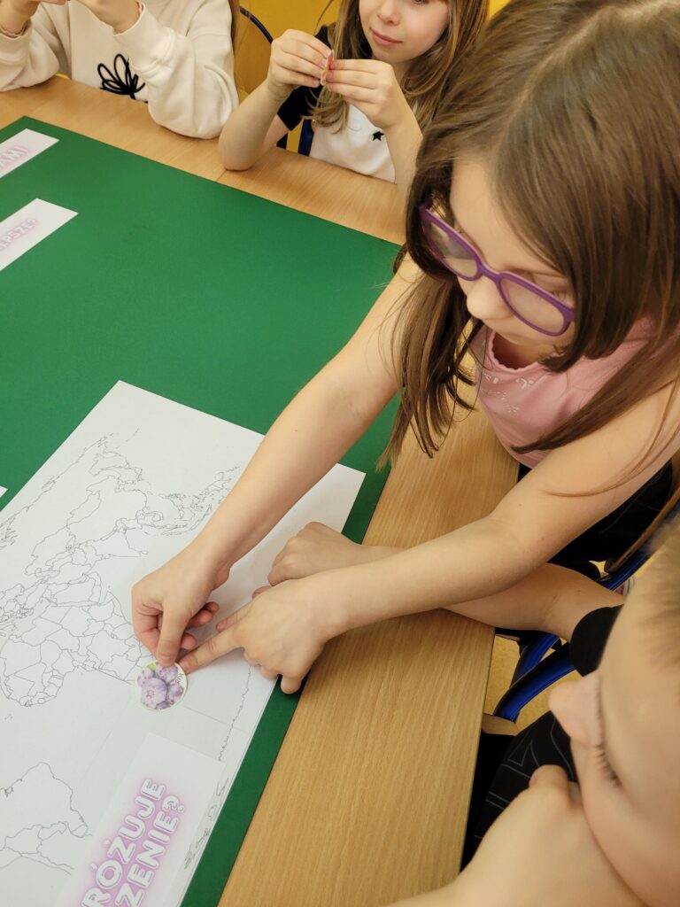 Jedzenie jest nam niezbędne każdego dnia. Ale czy dzieci wiedzą skąd pochodzi żywność? W trakcie zajęć pn. „Płyną statki z bananami” pierwszaki dowiedziały się, skąd może pochodzić żywność w sklepach, poznały kraje, w których jest produkowana, ustalały w jaki sposób jest ona transportowana. Na koniec stworzyły Kodeks Mądrego Klienta.