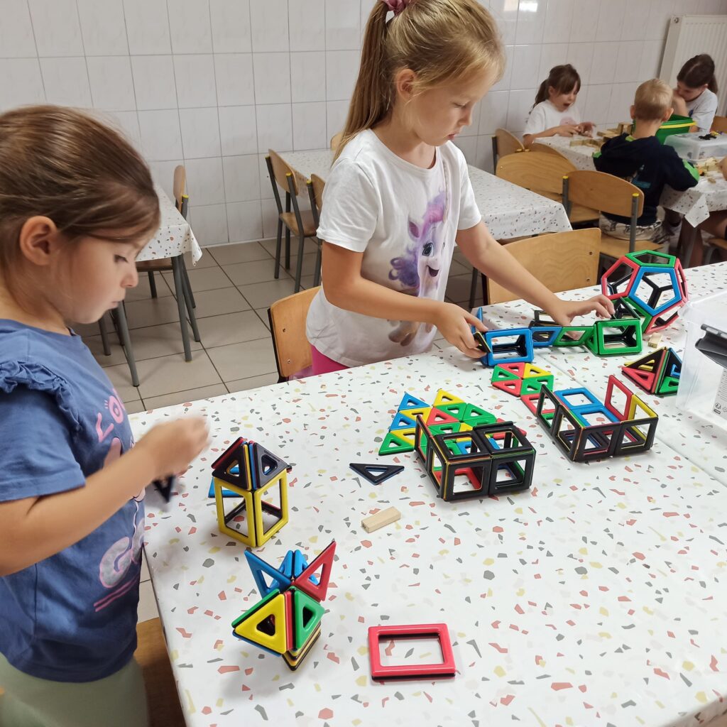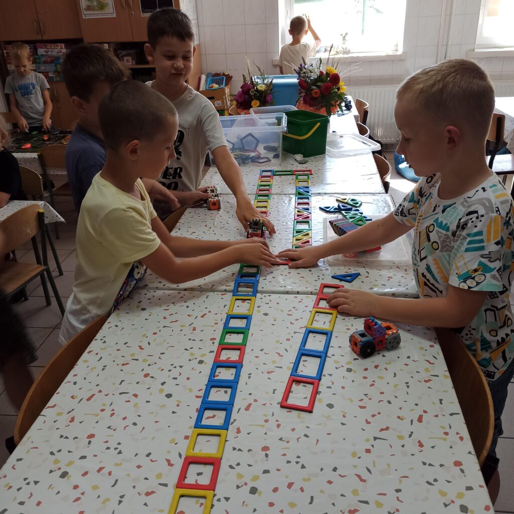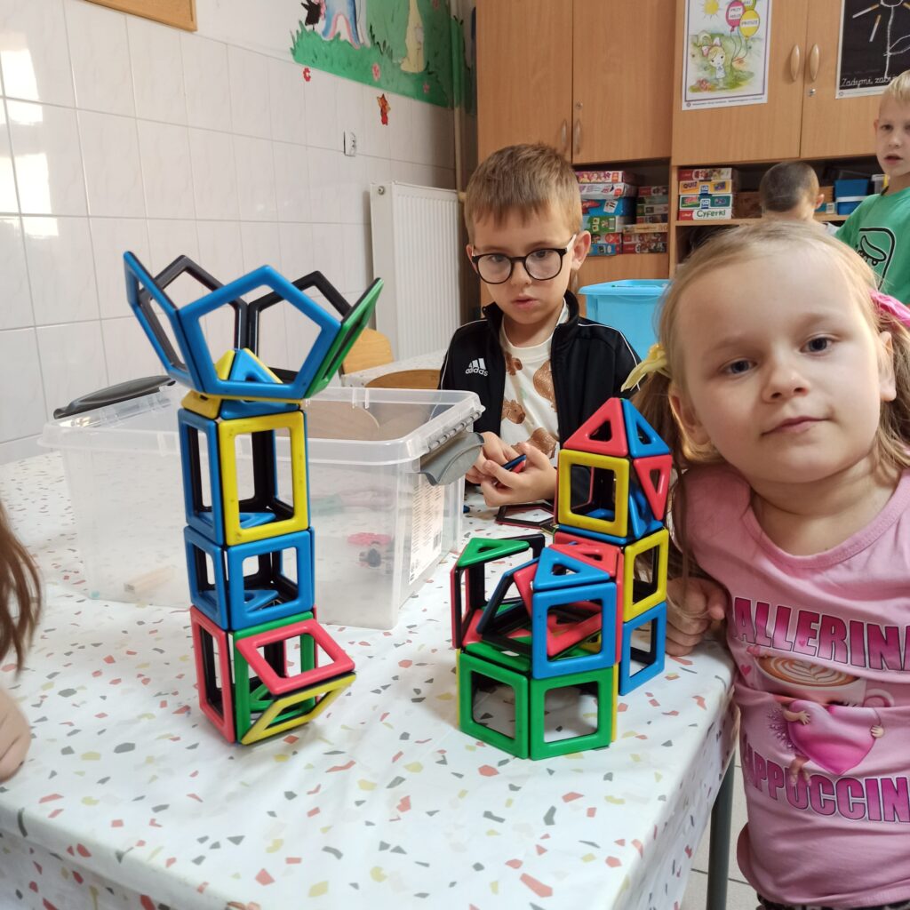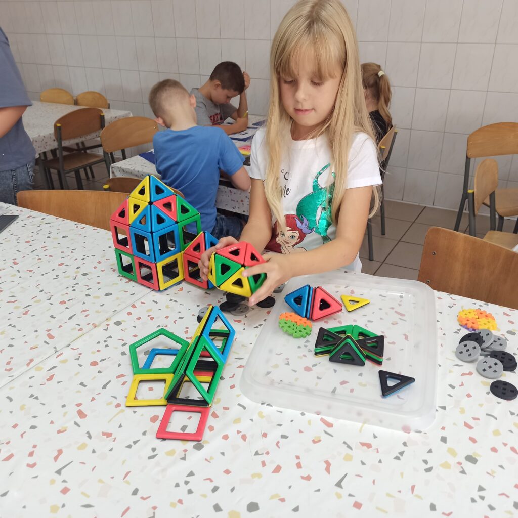 Uczniowie z przyjemnością tworzyli wszelkiego rodzaju budowle z klocków magnetycznych. Rozwijali kreatywność i twórcze myślenie tworząc: bunkry, wieżowce, sklepy, zagrody itp. Malując farbami z programu „Laboratoria Przyszłości” dzieci zaprezentowały swoje emocje. Powstały zabawne i interesujące stworki. Pomysły, wspólne rozwiązywanie problemów w trakcje budowli 3D integrowały grupę świetlicową.