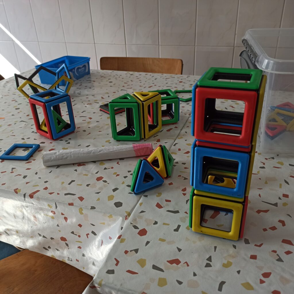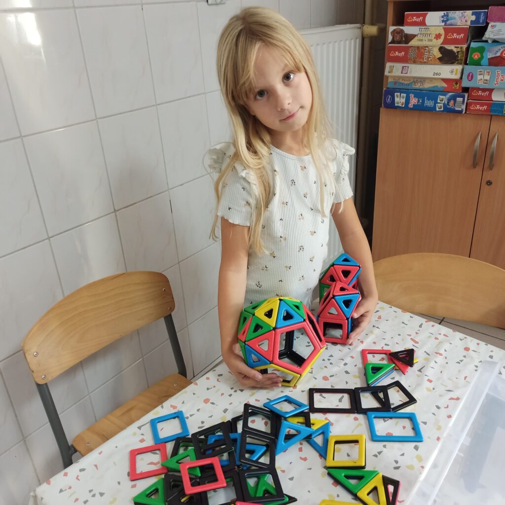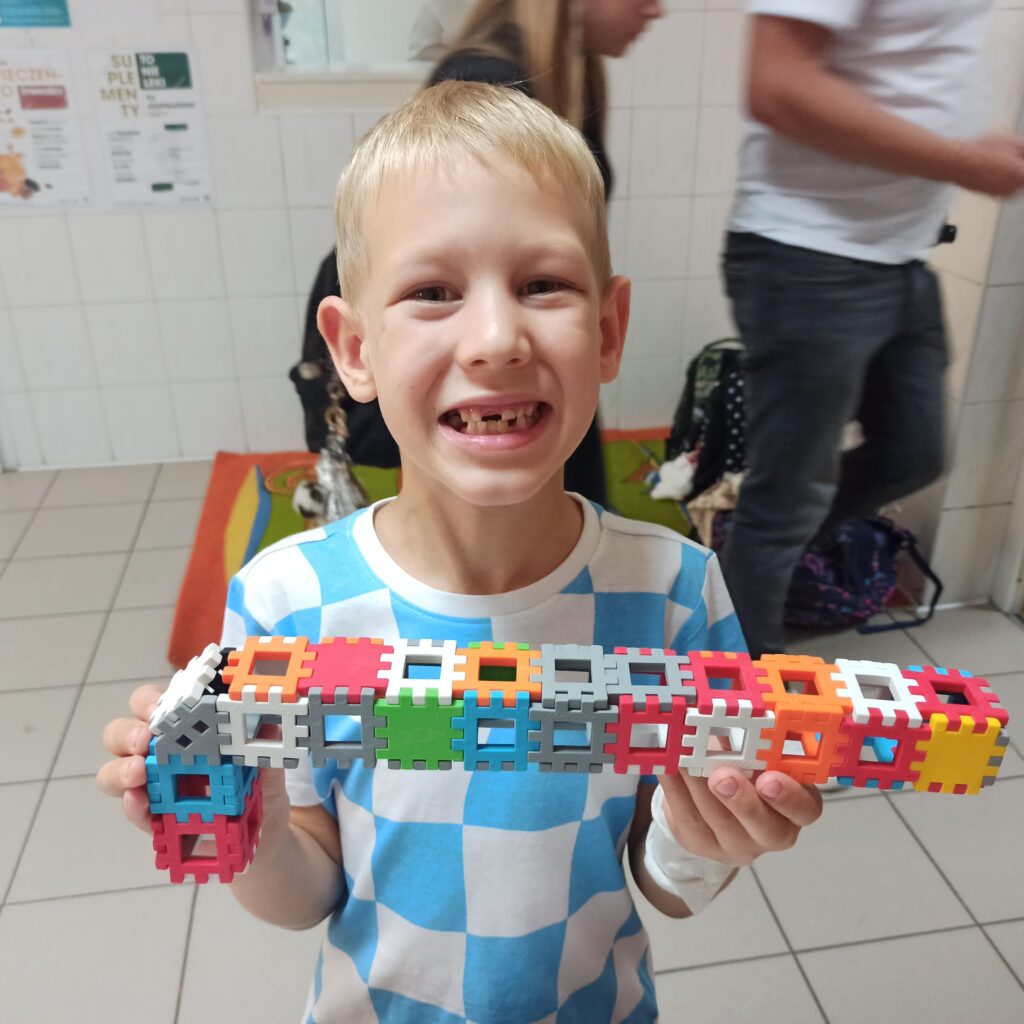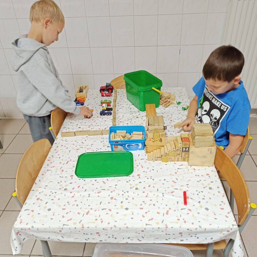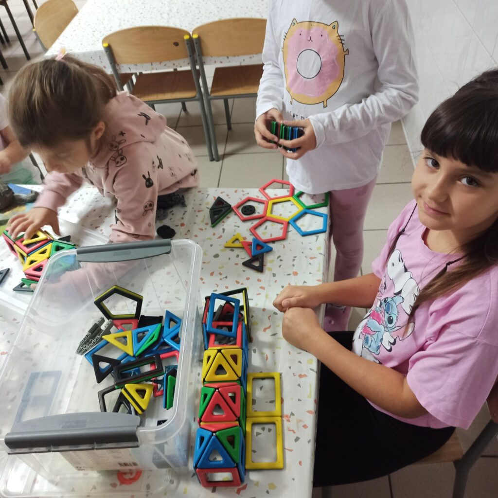 Uczniowie z przyjemnością tworzyli wszelkiego rodzaju budowle z klocków magnetycznych. Rozwijali kreatywność i twórcze myślenie tworząc: bunkry, wieżowce, sklepy, zagrody itp. Malując farbami z programu „Laboratoria Przyszłości” dzieci zaprezentowały swoje emocje. Powstały zabawne i interesujące stworki. Pomysły, wspólne rozwiązywanie problemów w trakcje budowli 3D integrowały grupę świetlicową.