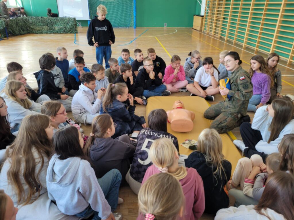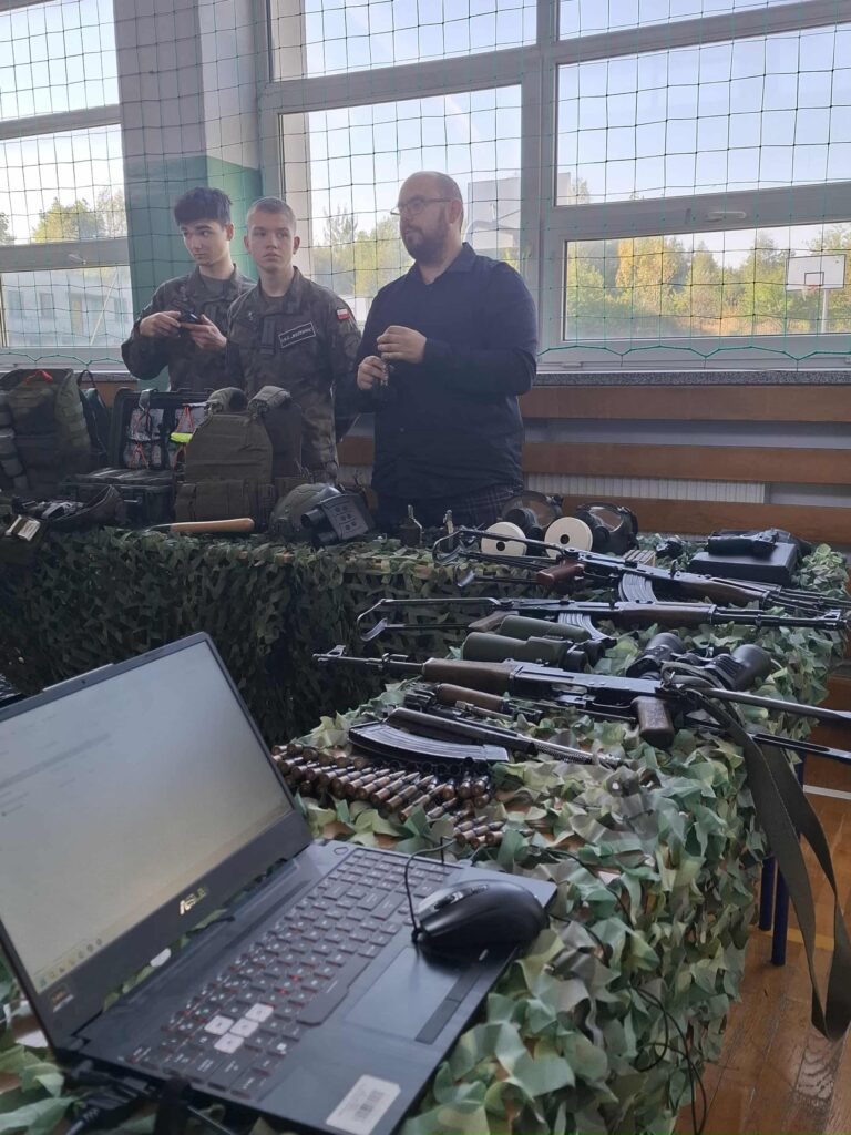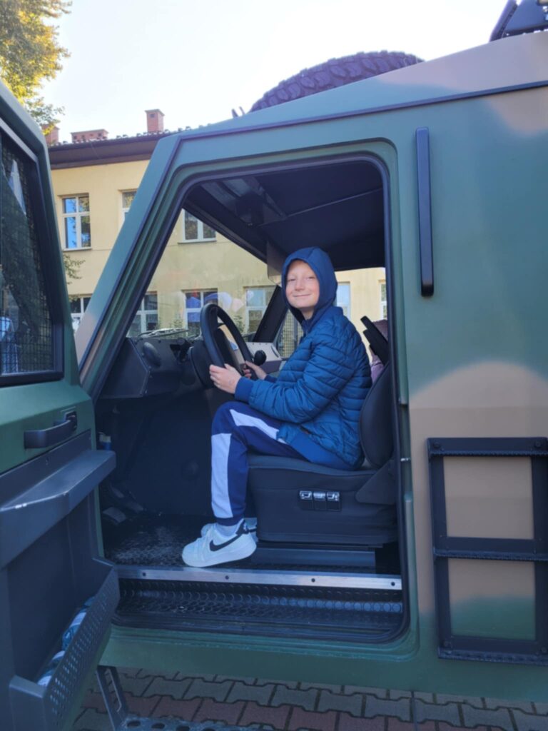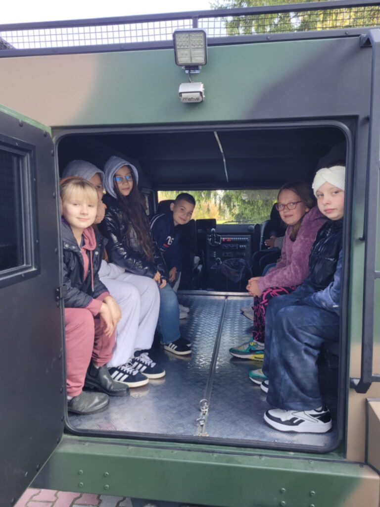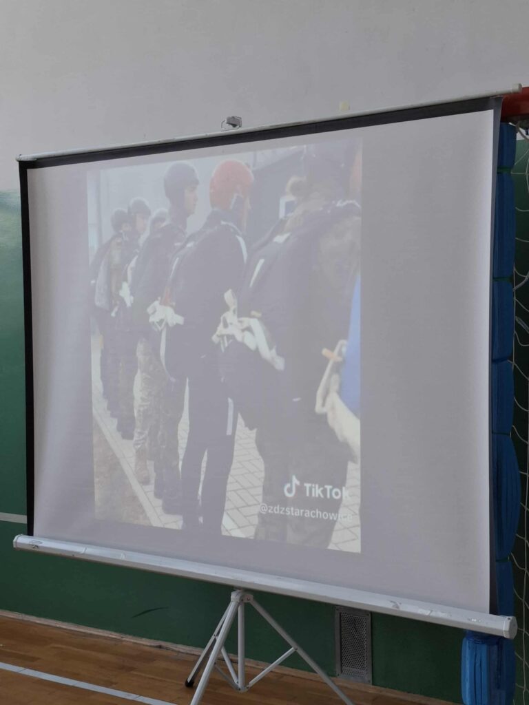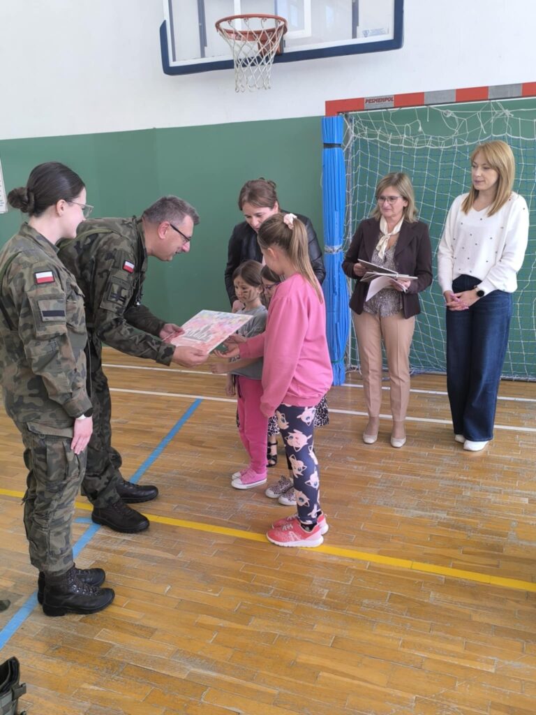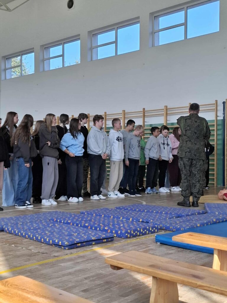 W czwartek, 02 października uczniowie Zespołu Placówek Oświatowych w Stykowie mieli okazję spotkać się z wyjątkowymi gośćmi. Z wizytą przybyli do nas żołnierze ze 103. Batalionu Lekkiej Piechoty 10. Świętokrzyskiej Brygady Obrony Terytorialnej w Ostrowcu Świętokrzyskim. Towarzyszyli im także uczniowie z Zakładu Doskonalenia Zawodowego z klas mundurowych w Starachowicach. W spotkaniu uczestniczyły nawet przedszkolaki. Celem tej wizyty było przede wszystkim przybliżenie uczniom codziennej, trudnej i niezwykle odpowiedzialnej służby, jaką pełnią polscy żołnierze dla ojczyzny. Wszyscy mieli okazję zapoznać się z rolą i zadaniami WOT w czasie pokoju, ale także w sytuacjach zagrożenia, poszerzyć wiedzę na temat bezpieczeństwa, obronności, numerów alarmowych czy udzielania pierwszej pomocy. Uczestnicy spotkania mogli także obejrzeć z bliska wojskowe mundury, hełmy, broń, plecaki, środki łączności. Przekaz słowny został wzbogacony o prezentacje multimedialne ukazujące działania żołnierzy w różnych sytuacjach, ćwiczenia wojskowe. Dużą atrakcją okazał się niewątpliwie zaparkowany przed wejściem do szkoły pojazd wojskowy. Samochód został udostępniony dzięki uprzejmości ze strony firmy Autobox Innovations w Starachowicach, która zajmuje się produkcją i modernizacją wyspecjalizowanych pojazdów wojskowych. Uczniowie mogli obejrzeć samochód na zewnątrz, wejść do jego środka, a nawet odbyć krótką przejażdżkę po szkolnym placu.