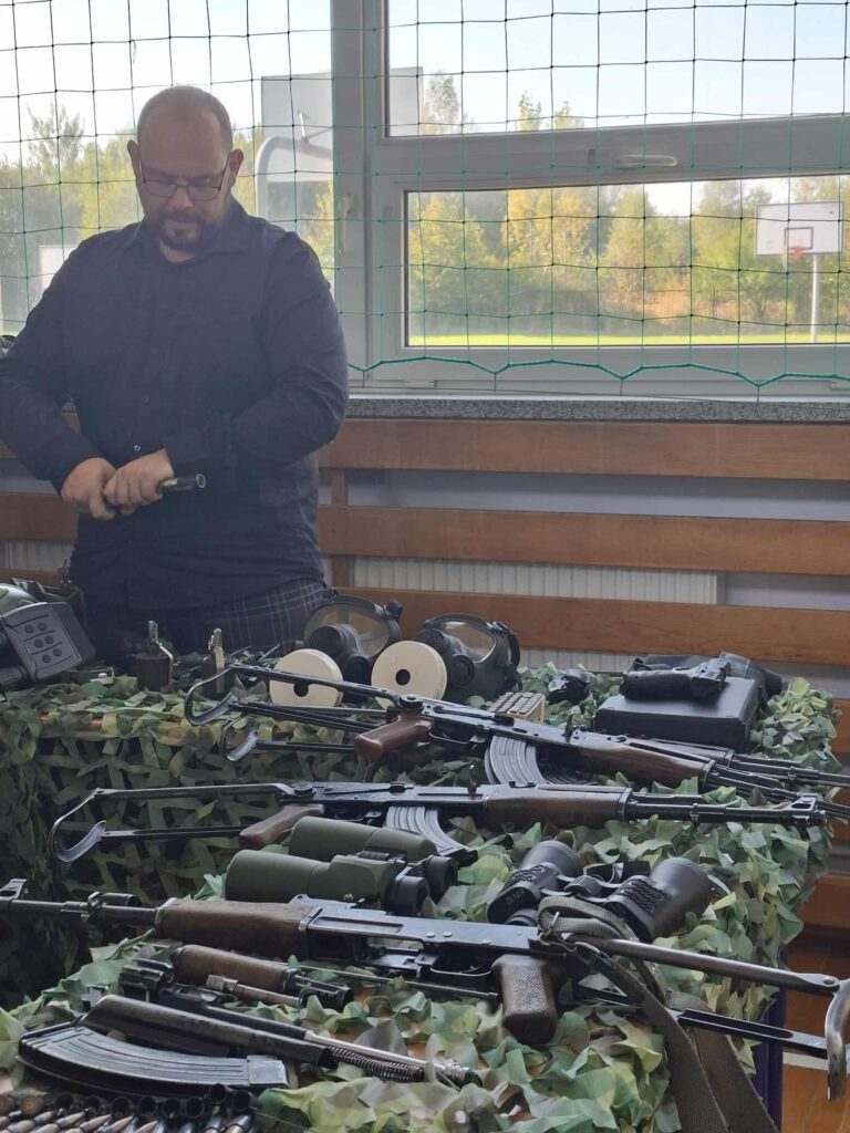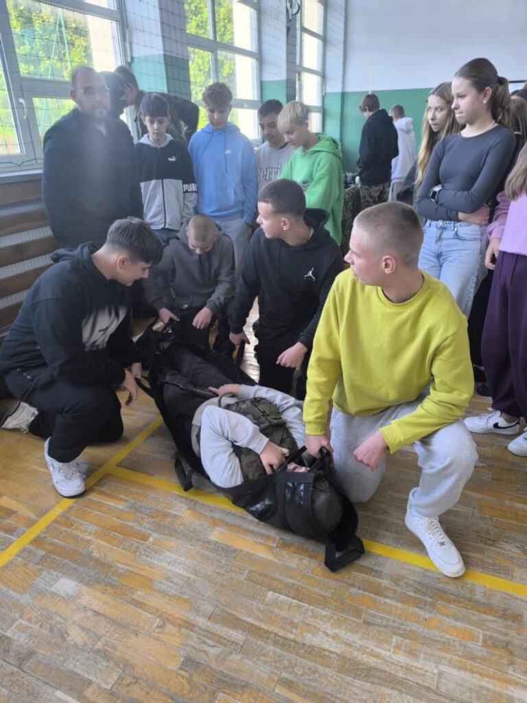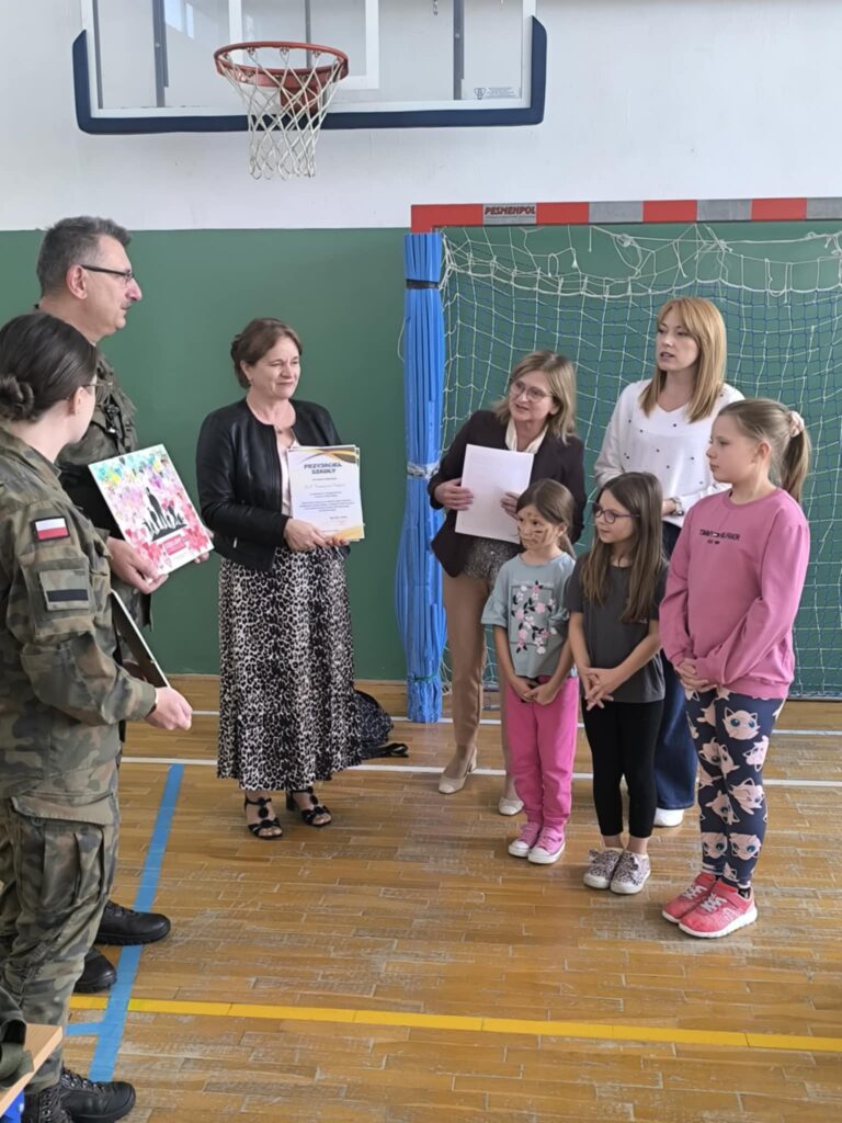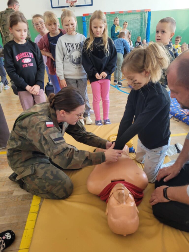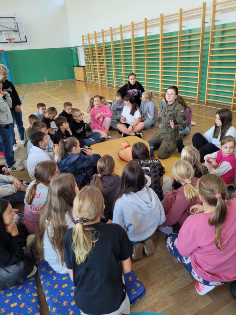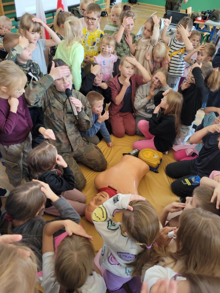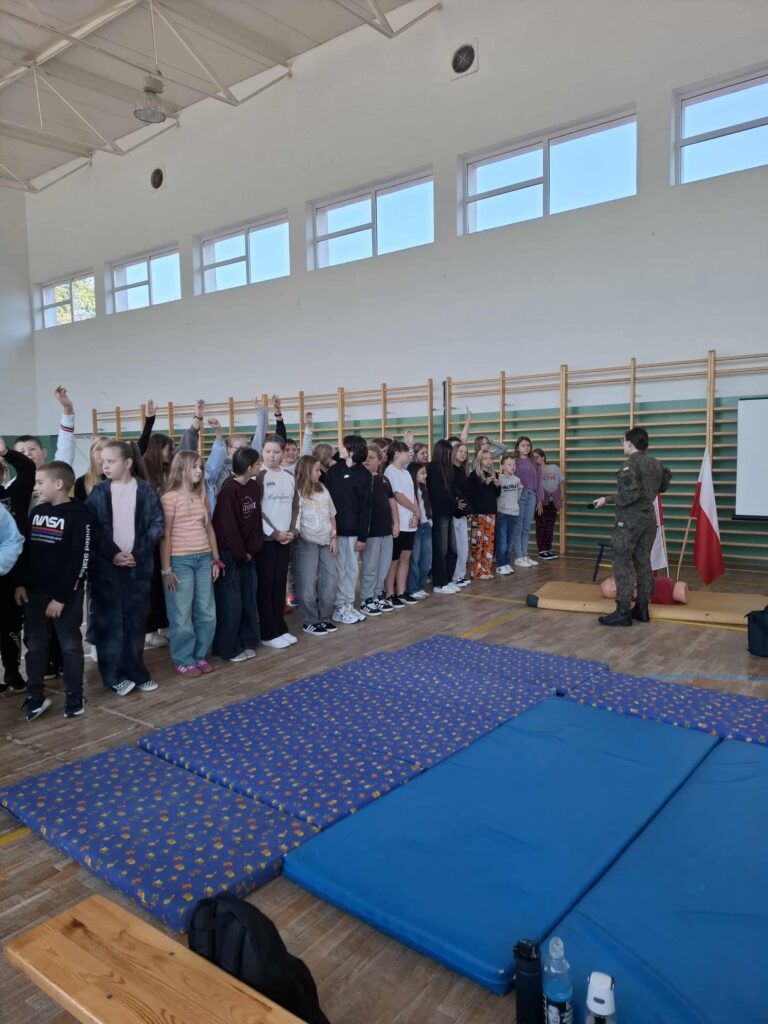 W czwartek, 02 października uczniowie Zespołu Placówek Oświatowych w Stykowie mieli okazję spotkać się z wyjątkowymi gośćmi. Z wizytą przybyli do nas żołnierze ze 103. Batalionu Lekkiej Piechoty 10. Świętokrzyskiej Brygady Obrony Terytorialnej w Ostrowcu Świętokrzyskim. Towarzyszyli im także uczniowie z Zakładu Doskonalenia Zawodowego z klas mundurowych w Starachowicach. W spotkaniu uczestniczyły nawet przedszkolaki. Celem tej wizyty było przede wszystkim przybliżenie uczniom codziennej, trudnej i niezwykle odpowiedzialnej służby, jaką pełnią polscy żołnierze dla ojczyzny. Wszyscy mieli okazję zapoznać się z rolą i zadaniami WOT w czasie pokoju, ale także w sytuacjach zagrożenia, poszerzyć wiedzę na temat bezpieczeństwa, obronności, numerów alarmowych czy udzielania pierwszej pomocy. Uczestnicy spotkania mogli także obejrzeć z bliska wojskowe mundury, hełmy, broń, plecaki, środki łączności. Przekaz słowny został wzbogacony o prezentacje multimedialne ukazujące działania żołnierzy w różnych sytuacjach, ćwiczenia wojskowe. Dużą atrakcją okazał się niewątpliwie zaparkowany przed wejściem do szkoły pojazd wojskowy. Samochód został udostępniony dzięki uprzejmości ze strony firmy Autobox Innovations w Starachowicach, która zajmuje się produkcją i modernizacją wyspecjalizowanych pojazdów wojskowych. Uczniowie mogli obejrzeć samochód na zewnątrz, wejść do jego środka, a nawet odbyć krótką przejażdżkę po szkolnym placu.