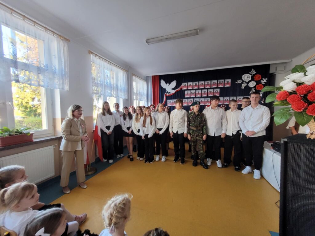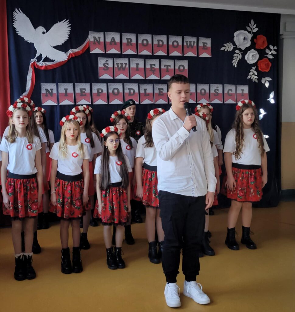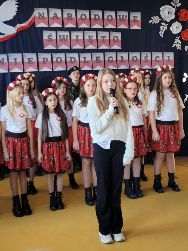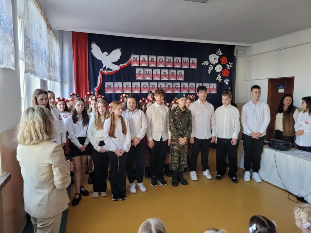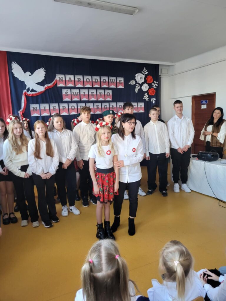 Dnia 7 listopada 2025 roku w naszej szkole odbyła się uroczysta akademia z okazji Narodowego Święta Niepodległości, przygotowana przez uczniów klasy VII oraz chór szkolny ( opiekunowie : Śpiewak J., Kubala A.). Celem uroczystości było upamiętnienie 107. rocznicy odzyskania przez Polskę niepodległości po 123 latach zaborów oraz kształtowanie postaw patriotycznych wśród uczniów. Podczas akademii uczniowie klasy VII i chór szkolny zaprezentowali montaż słowno-muzyczny, w którym przypomnieli najważniejsze wydarzenia z historii naszego kraju prowadzące do odzyskania wolności. Występ przeplatany był wierszami i pieśniami patriotycznymi, takimi jak „Rota”, „Piechota” czy „Marsz Pierwszej Brygady”. Dekoracja holu ( P. Bryła M. ) – biało-czerwone barwy, symbole narodowe– podkreślała charakter święta.