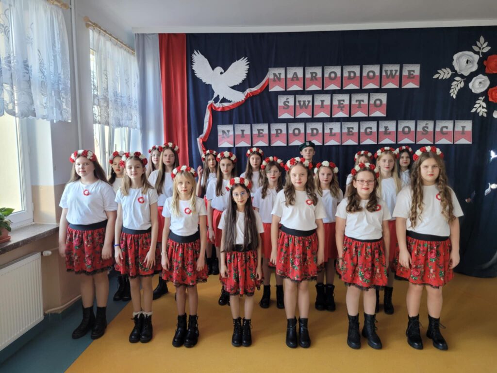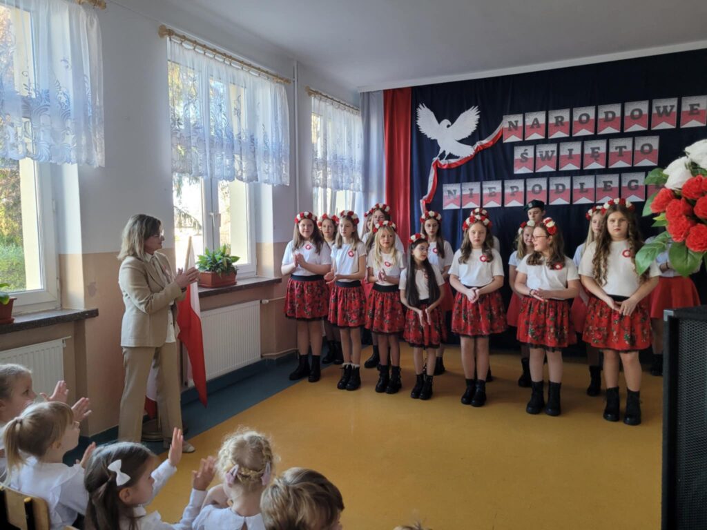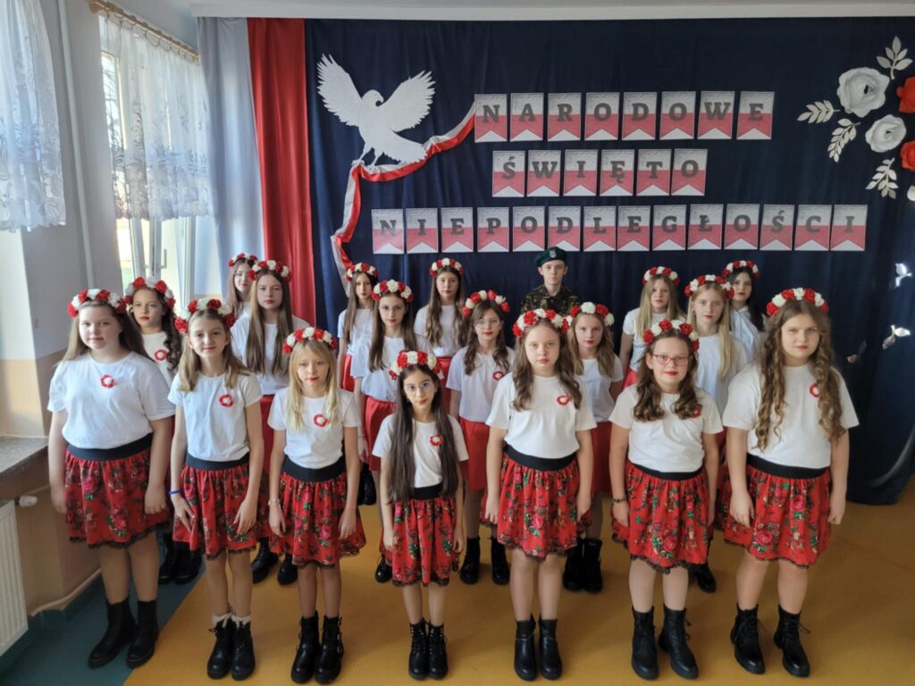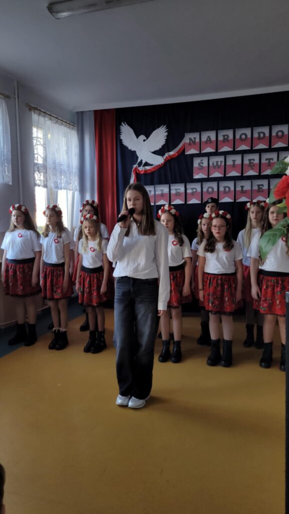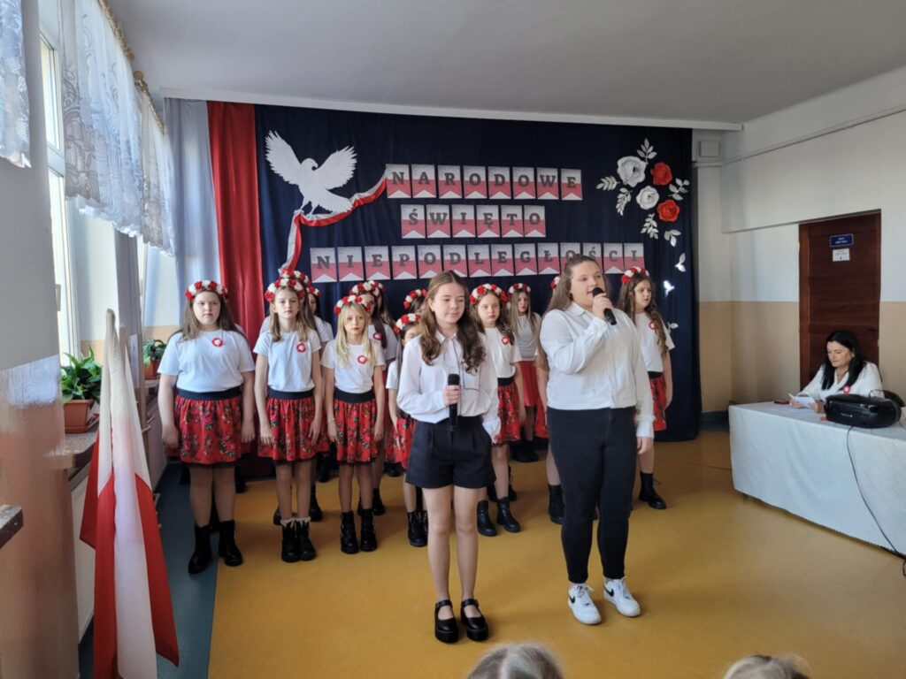Dnia 7 listopada 2025 roku w naszej szkole odbyła się uroczysta akademia z okazji Narodowego Święta Niepodległości, przygotowana przez uczniów klasy VII oraz chór szkolny ( opiekunowie : Śpiewak J., Kubala A.). Celem uroczystości było upamiętnienie 107. rocznicy odzyskania przez Polskę niepodległości po 123 latach zaborów oraz kształtowanie postaw patriotycznych wśród uczniów. Podczas akademii uczniowie klasy VII i chór szkolny zaprezentowali montaż słowno-muzyczny, w którym przypomnieli najważniejsze wydarzenia z historii naszego kraju prowadzące do odzyskania wolności. Występ przeplatany był wierszami i pieśniami patriotycznymi, takimi jak „Rota”, „Piechota” czy „Marsz Pierwszej Brygady”. Dekoracja holu ( P. Bryła M. ) – biało-czerwone barwy, symbole narodowe– podkreślała charakter święta.