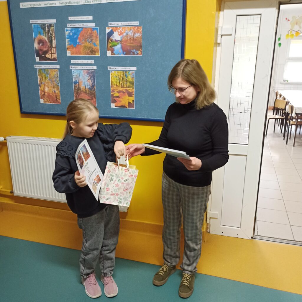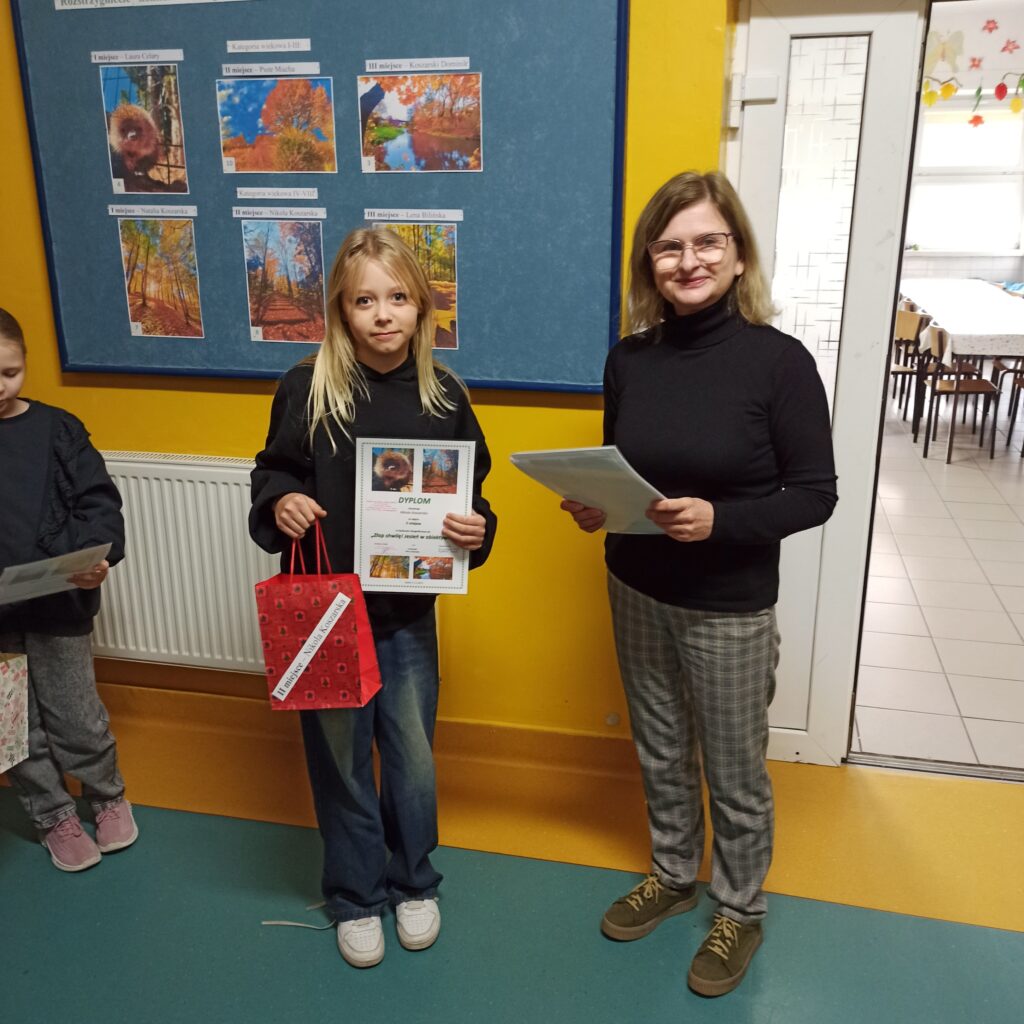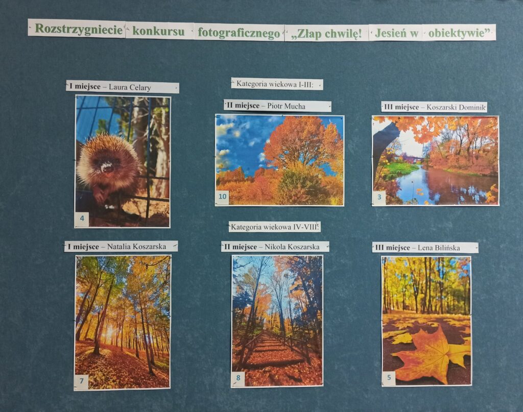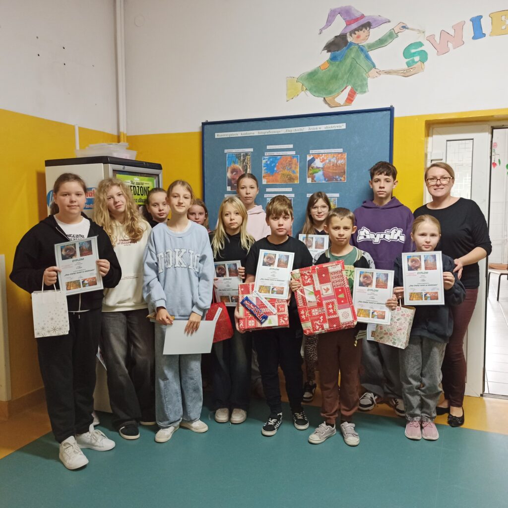 Konkurs adresowany był do uczniów klas I-VIII, a jego organizatorami byli nauczyciele świetlicy szkolnej. Zadaniem uczniów było wykonanie zdjęcia telefonem w bardzo dobrej jakości. Temat pracy nawiązywał do piękna otaczającej nas przyrody, roślin oraz zwierząt jesienią. Przesłane zdjęcia zostały wydrukowane i umieszczone na sztaludze przy wejściu do szkoły. Fotografie zamiast imion i nazwisk otrzymały numerki. Uczniowie kl. I-VIII wraz z pracownikami szkoły mogli oddać swój głos na 3 najlepsze prace. Po zliczeniu głosów stwierdzono, jakie prace wygrały. Pierwsze, drugie i trzecie miejsce otrzymali uczniowie w kategorii wiekowej kl. I-III oraz kl. IV-VIII. Wszyscy uczestnicy otrzymali dyplom i słodki poczęstunek, a zwycięzcy dodatkowo nagrody rzeczowe, które zostały zakupione z pieniążków uzbieranych ze sprzedaży gofrów w ramach działań – „Smerfne zabawy i gofry”.