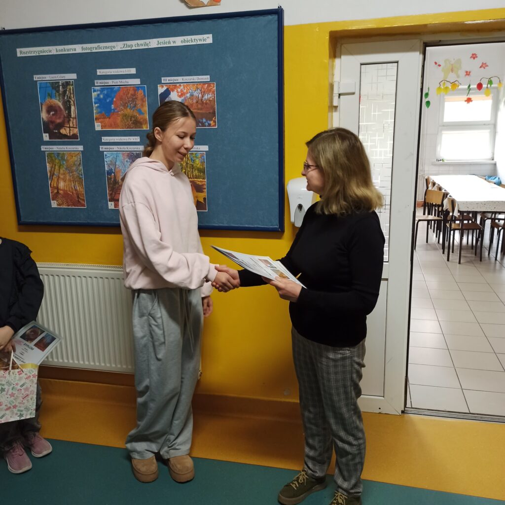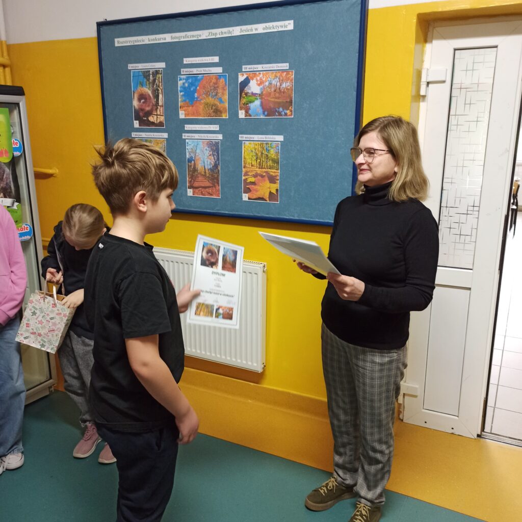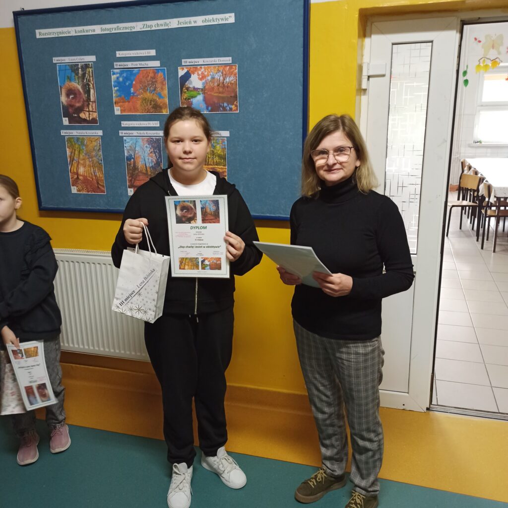 Konkurs adresowany był do uczniów klas I-VIII, a jego organizatorami byli nauczyciele świetlicy szkolnej. Zadaniem uczniów było wykonanie zdjęcia telefonem w bardzo dobrej jakości. Temat pracy nawiązywał do piękna otaczającej nas przyrody, roślin oraz zwierząt jesienią. Przesłane zdjęcia zostały wydrukowane i umieszczone na sztaludze przy wejściu do szkoły. Fotografie zamiast imion i nazwisk otrzymały numerki. Uczniowie kl. I-VIII wraz z pracownikami szkoły mogli oddać swój głos na 3 najlepsze prace. Po zliczeniu głosów stwierdzono, jakie prace wygrały. Pierwsze, drugie i trzecie miejsce otrzymali uczniowie w kategorii wiekowej kl. I-III oraz kl. IV-VIII. Wszyscy uczestnicy otrzymali dyplom i słodki poczęstunek, a zwycięzcy dodatkowo nagrody rzeczowe, które zostały zakupione z pieniążków uzbieranych ze sprzedaży gofrów w ramach działań – „Smerfne zabawy i gofry”.