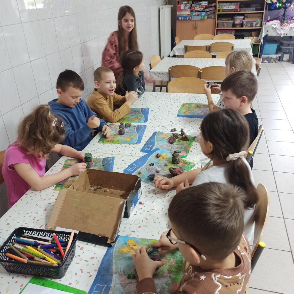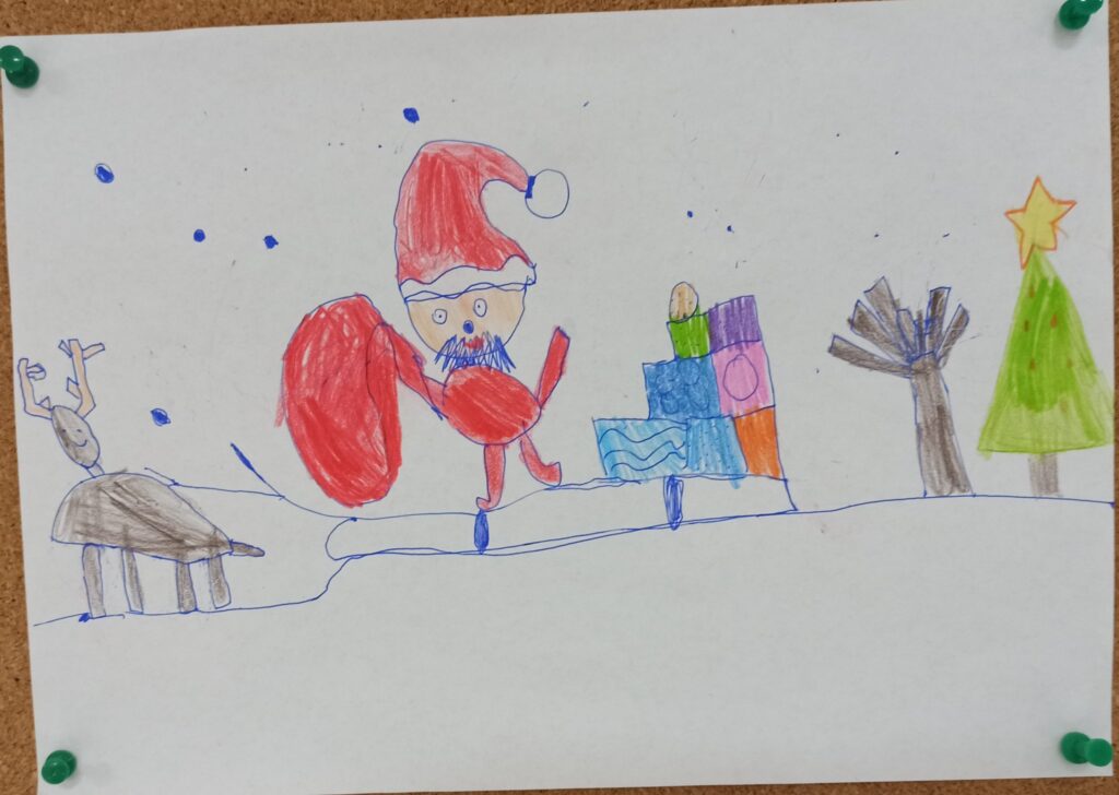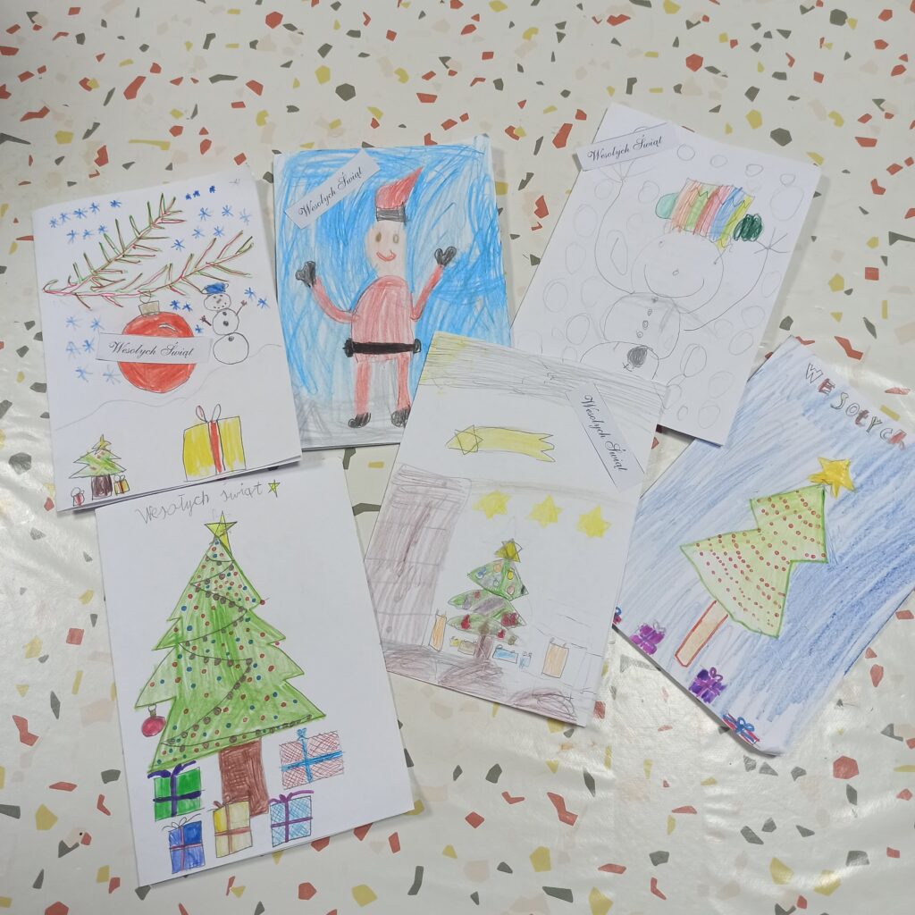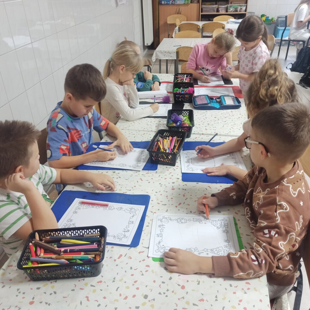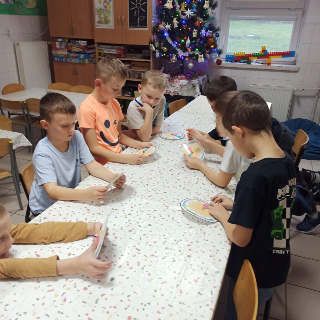 Grudzień jest magicznym miesiącem, pełnym nadziei i oczekiwania na święta. W tym tygodniu wyczekiwaliśmy na św. Mikołaja, dlatego też czytaliśmy wiersze i ciekawostki z nim związane. Uczniowie ochoczo pisali list do świętego, a młodsza grupa świetlicowa wykonała rysunki. Rozmawialiśmy na temat tradycji obdarowywania się prezentami i zapoznaliśmy uczniów z ideą wolontariatu. Debatowaliśmy na temat pomagania innym i bycia życzliwym. Wykonaliśmy pracę plastyczną dotyczącą wizerunku św. Mikołaja. Natomiast 2 i 3 grudnia zorganizowaliśmy wraz nauczycielami oraz uczniami kl. I kiermasz charytatywny dla chorej pani. Sprzedawaliśmy gofry, pizze i wypieki przyniesione przez rodziców. Dzięki takim akcjom uczniowie otwierali serca dla innych. Wspólnie ubraliśmy choinkę, by czuć już magię świąt 🙂