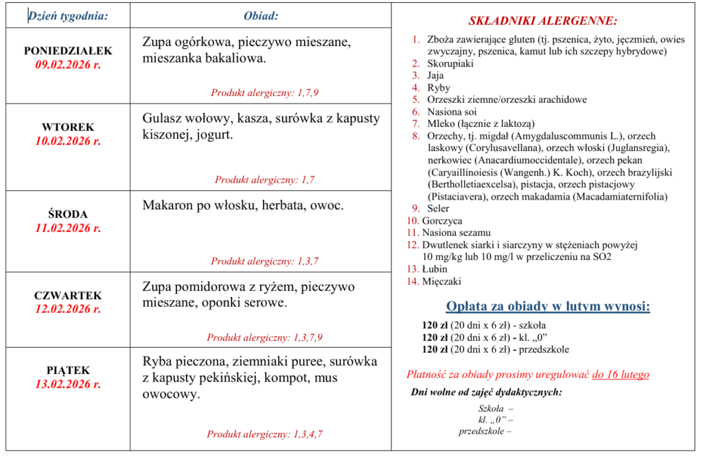 Jadłospis od 9 lutego