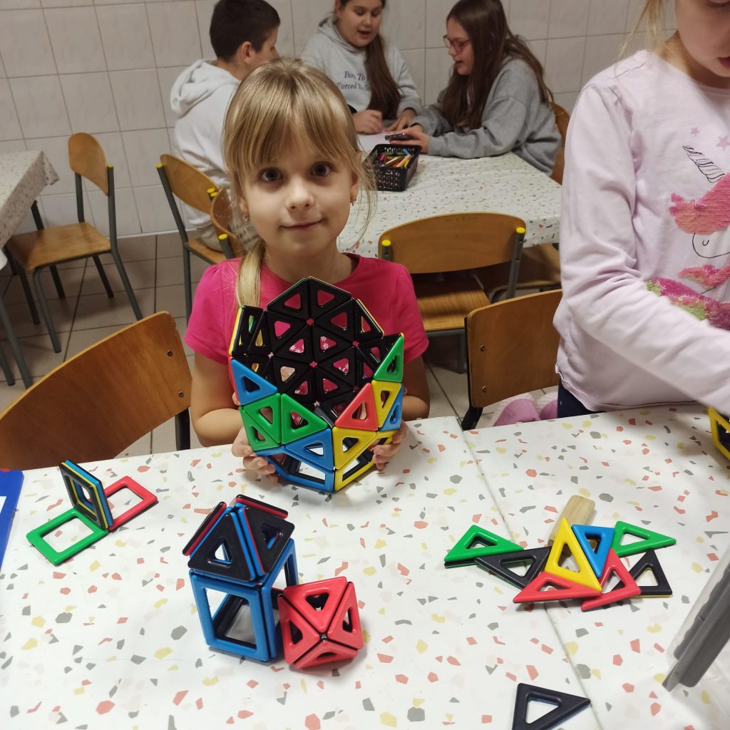 Laboratoria przyszłości cieszą się dużą popularnością wśród młodszych i starszych dzieci. Wspólne zabawy konstrukcyjne pozwalają lepiej się poznać grupie świetlicowej (klasy od „0” do IV), a stworzone budowle przynoszą radość i satysfakcję. Tworząc różne konstrukcje dzieci rozwija swoją wyobraźnię, umiejętności manualne oraz logiczne myślenie. Klocki magnetyczne dają nieograniczone możliwości tworzenia, które możecie zauważyć na zdjęciach poniżej zapraszamy do naszej galerii zdjęć.