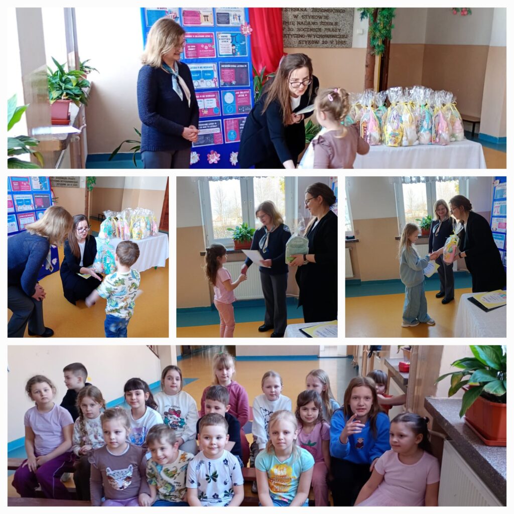. Wraz z Panią Dyrektor Krystyną Kasicą oraz szkolną koordynatorką konkursu, Panią Kingą Michalczewską, wręczyła uczniom dyplomy i nagrody.
