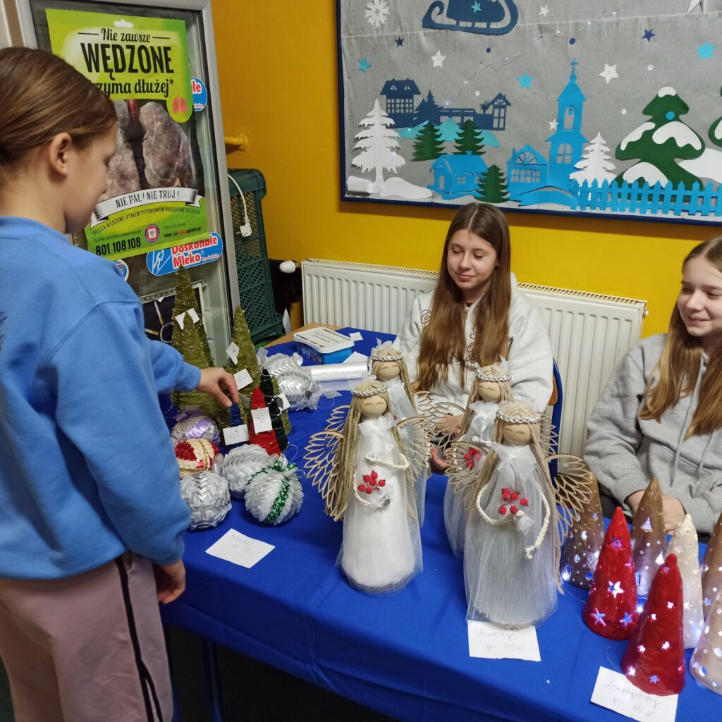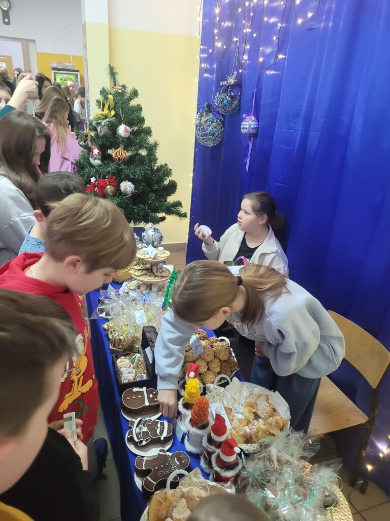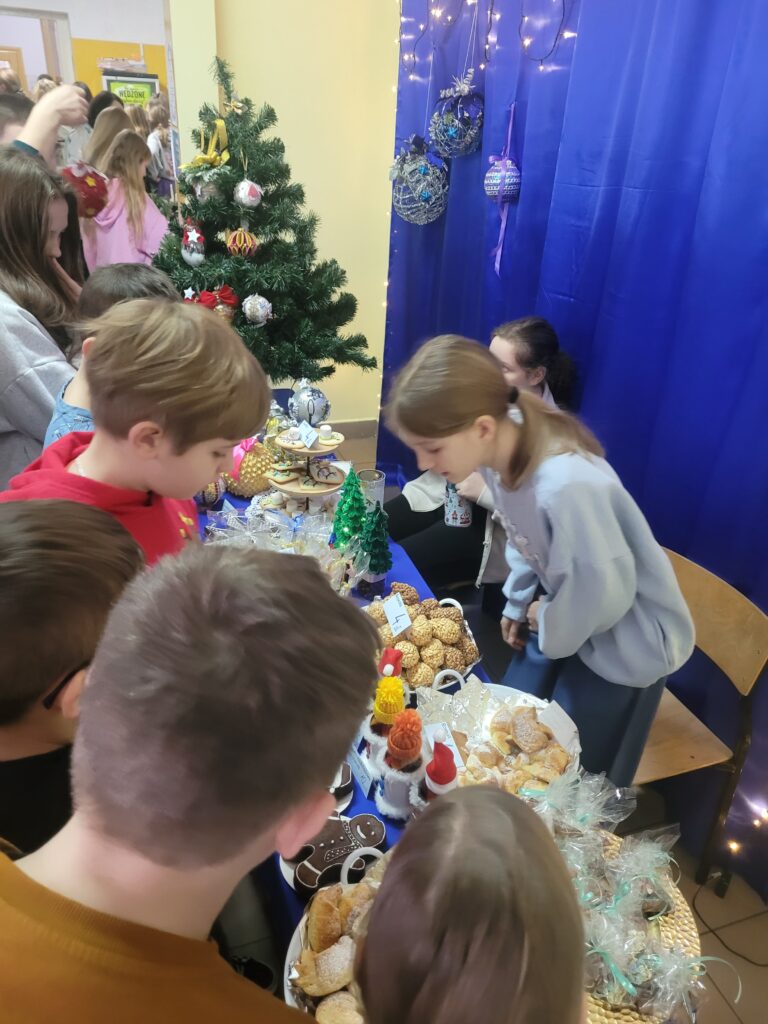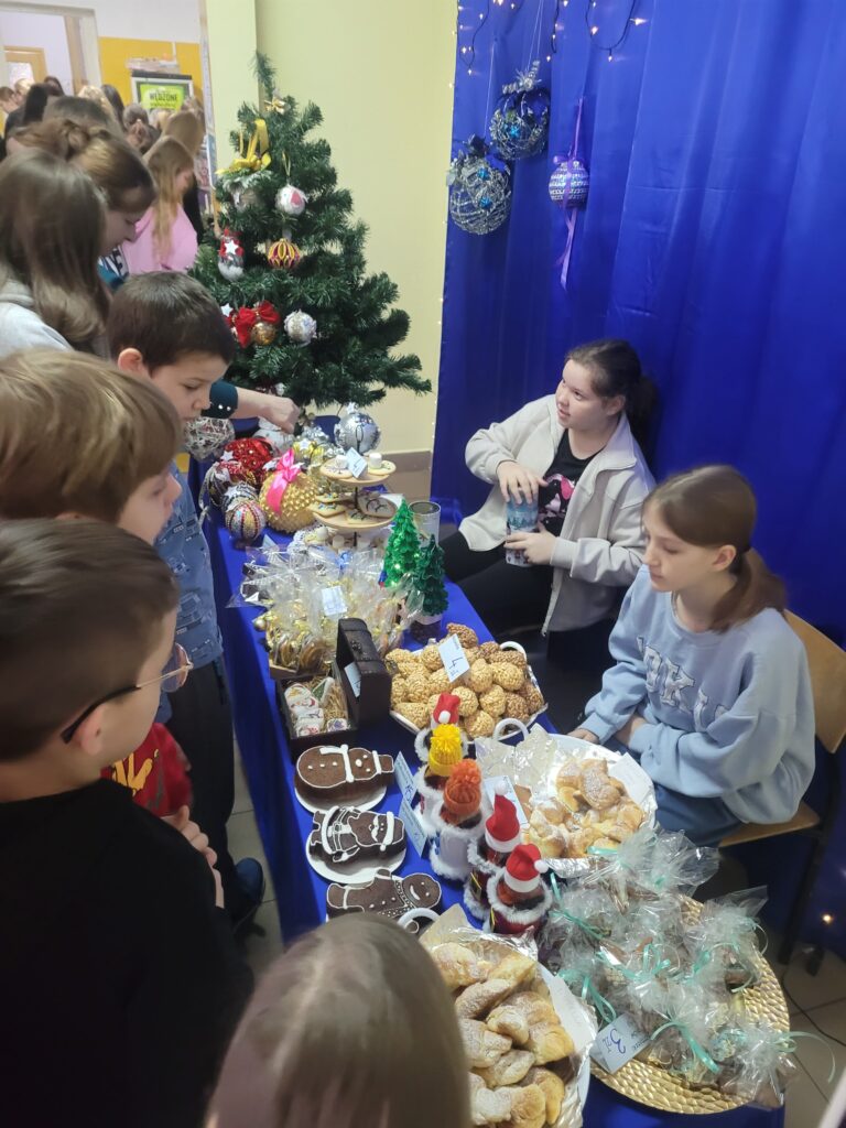 Na stoisku nauczycieli klasy II: pani Kingi Michalczewskiej i pani Justyny Chmielewskiej znalazły się „Najpiękniejsze bombki choinkowe”, które brały udział w szkolnym konkursie, pierniczki wykonane i ozdobione przez rodziców oraz uczniów klasy II, świąteczne dekoracje, ręcznie malowane kamyczki, rozgrzewające herbatki i słodkości. Uzbierane pieniądze zostały przeznaczone na nagrody w konkursie na „Najpiękniejszą bombkę choinkową”, zakupy klasowe drugaków oraz będą stanowiły fundusz na zakup nagród w przyszłych konkursach.