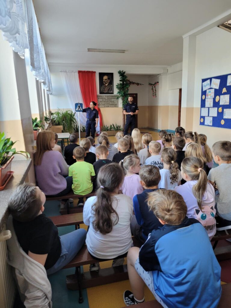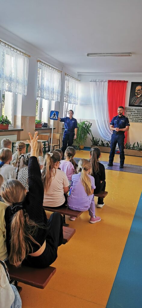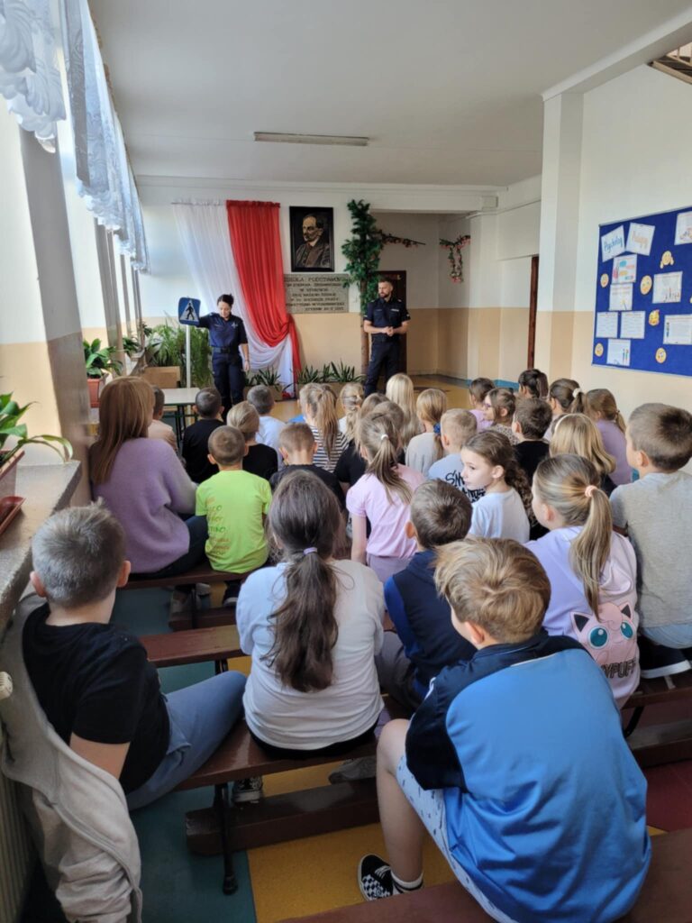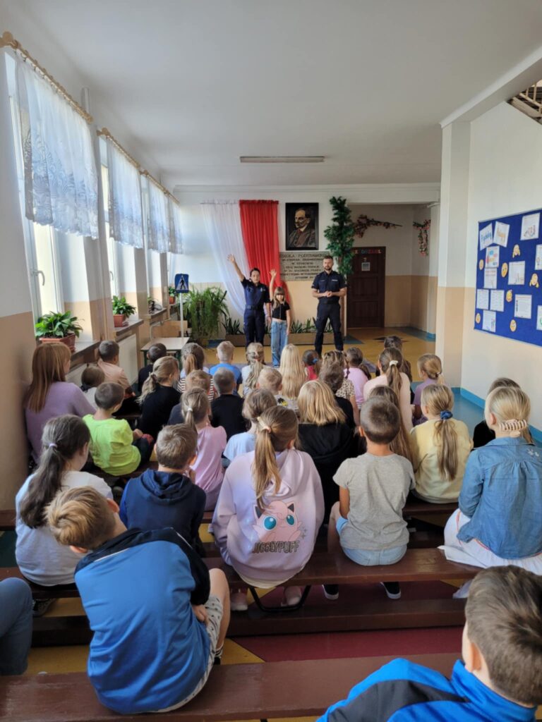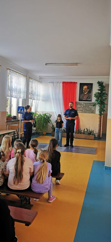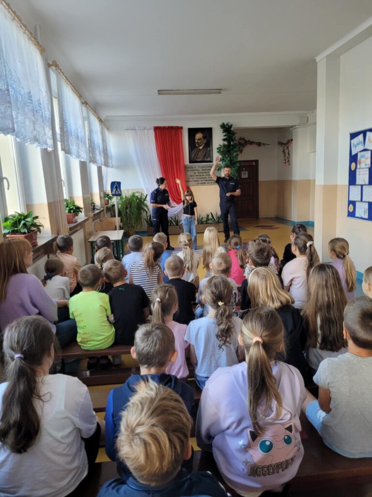 W dniu 22 września w naszej szkole odbyło się profilaktyczne spotkanie dla uczniów z przedstawicielami Komendy Powiatowej Policji w Starachowicach. Podczas spotkania z funkcjonariuszami Policji omówione zostały następujące zagadnienia: bezpieczeństwo w drodze do i ze szkoły – zwracano uwagę na konieczność przestrzegania zasad ruchu drogowego, przypomniano o przechodzeniu przez jezdnię w wyznaczonych miejscach oraz o noszeniu elementów odblaskowych.