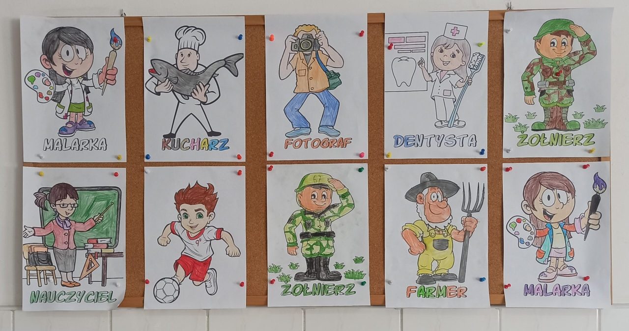 W pierwszym tygodniu marca uczniowie bawili się w zabawy dydaktyczne: „Dobierz obrazek do zawodu”, „Do kogo należą te przedmioty”, „Kalambury rysunkowe”. Rozmawialiśmy o najciekawszych zawodach i wykonaliśmy książeczkę przedstawiającą różne zawody.Oglądaliśmy filmiki edukacyjne dotyczące zawodów w mieście i na wsi. Dzieci przedstawiły propozycję „kim będą kiedy dorosną”. Wykonały pracę plastyczną pt. „Zawody rodziców”. W dalszym ciągu ćwiczyliśmy odczytywanie godzin zegarowych oraz zadań matematycznych z użyciem zegarów.