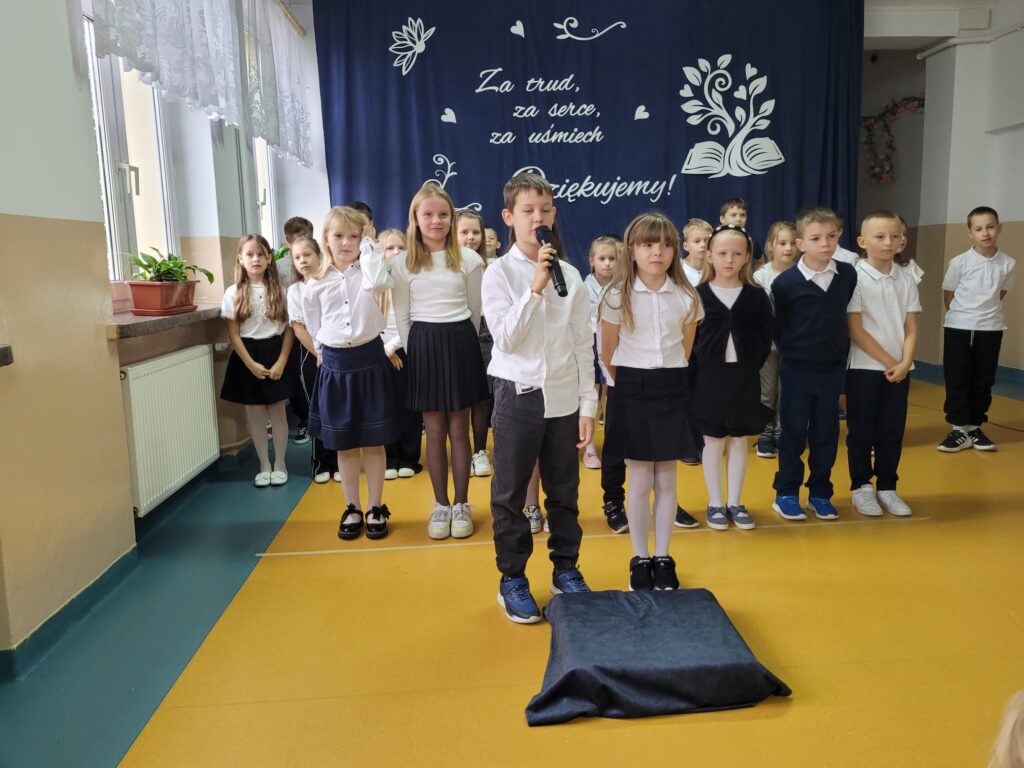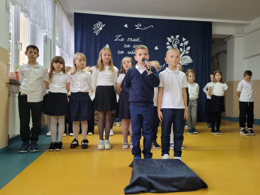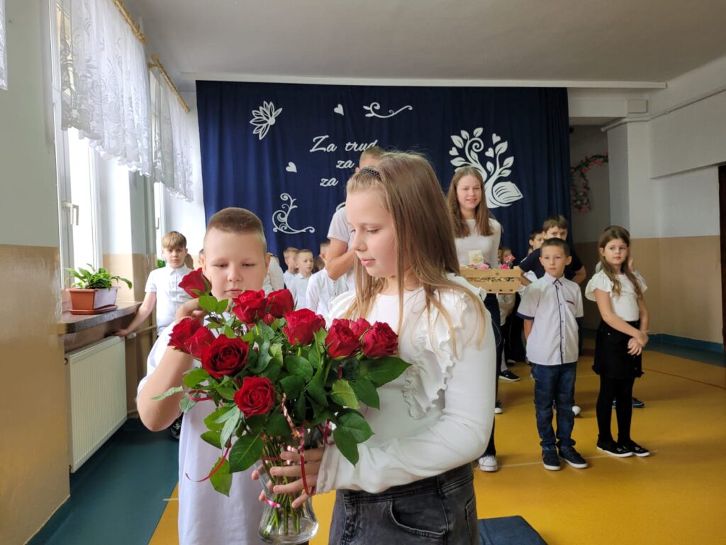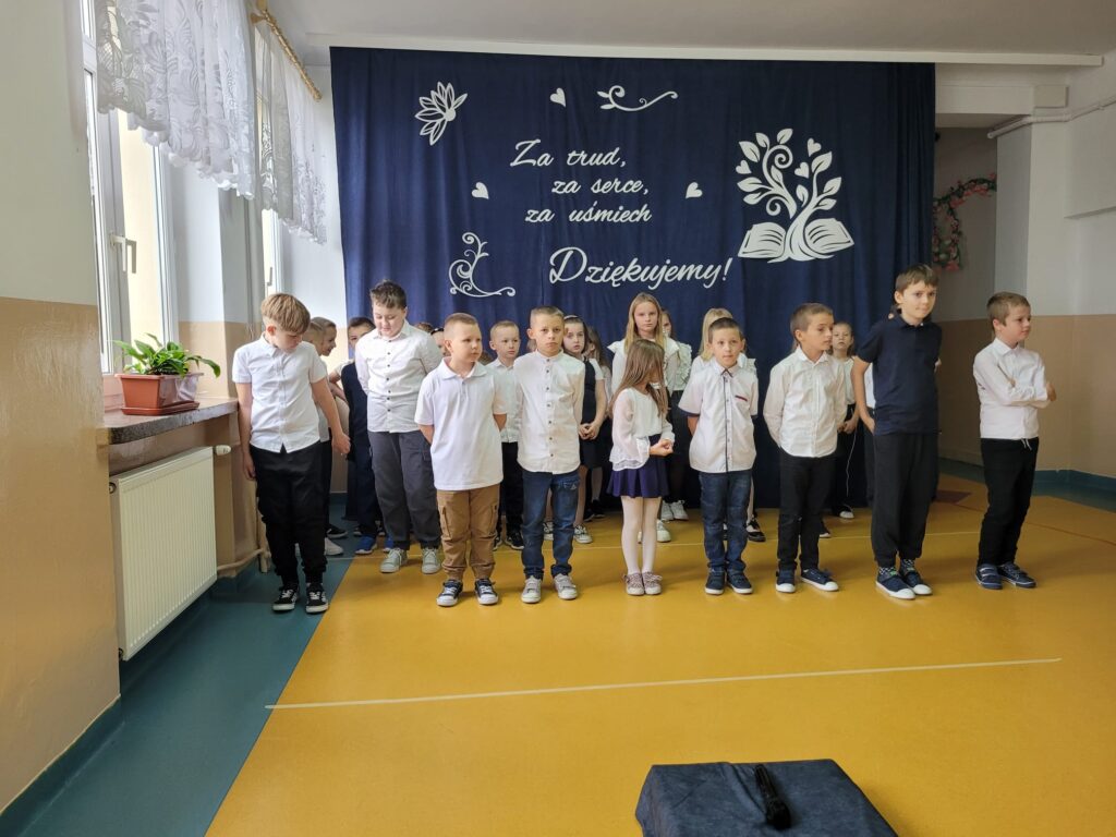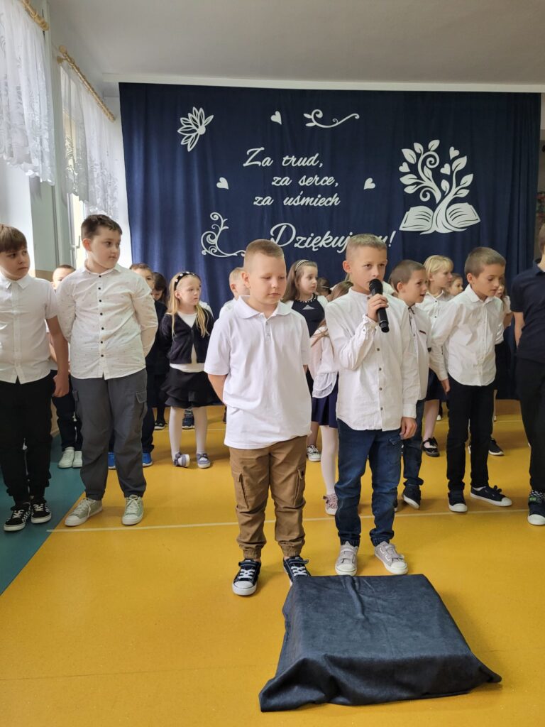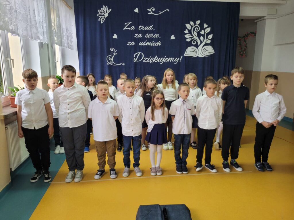 Wystąpili uczniowie klas II i III, którzy przez wiele dni z zaangażowaniem ćwiczyli swoje role, uczyli się wierszyków i piosenek, aby w piękny sposób podziękować nauczycielom oraz wszystkim pracownikom szkoły. Mali artyści zaprezentowali wzruszające przedstawienie, które zostało nagrodzone gromkimi brawami. Na zakończenie występu uczniowie wręczyli wszystkim obecnym czerwone róże – symbol wdzięczności i szacunku.