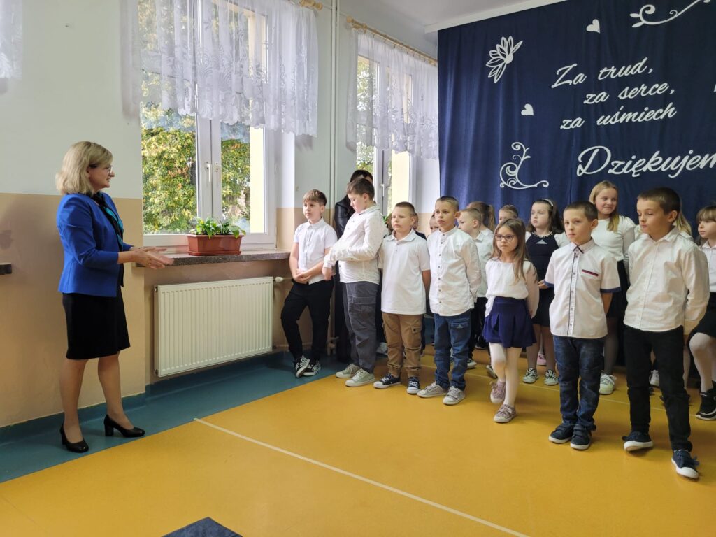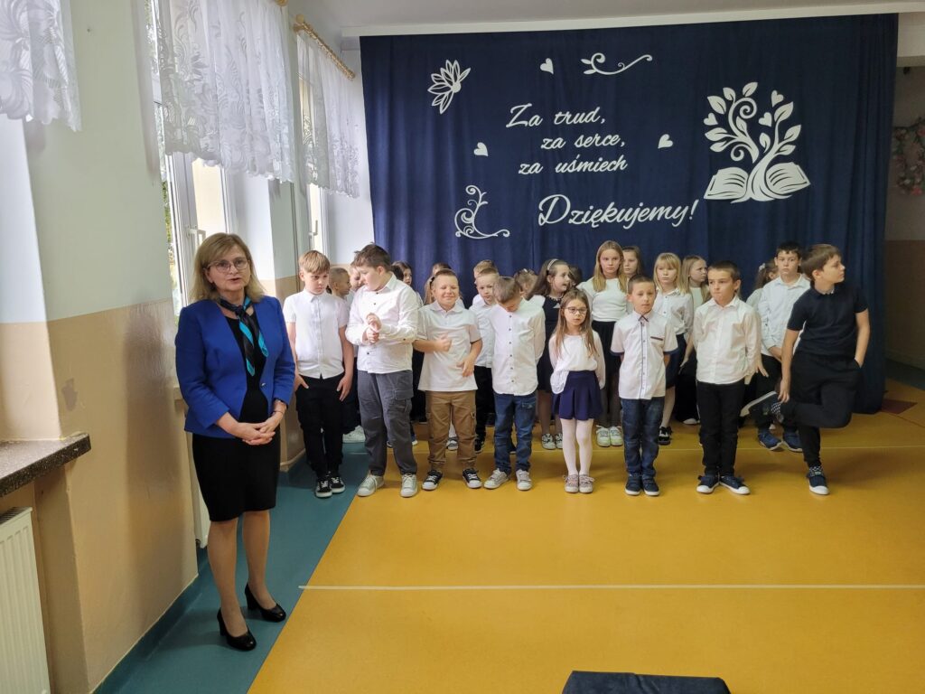 Po ich wystąpieniu głos zabrała pani dyrektor Krystyna Kasica, która w swoim przemówieniu, oprócz serdecznych słów skierowanych do całej społeczności szkolnej, złożyła podziękowania nauczycielom za trud i zaangażowanie w codzienną pracę dydaktyczno-wychowawczą.