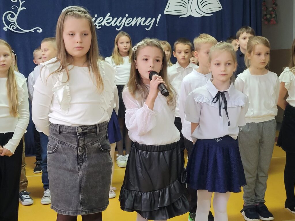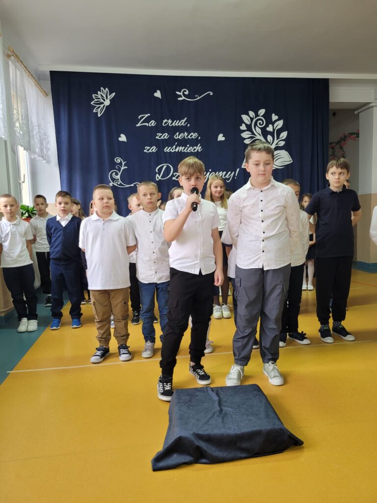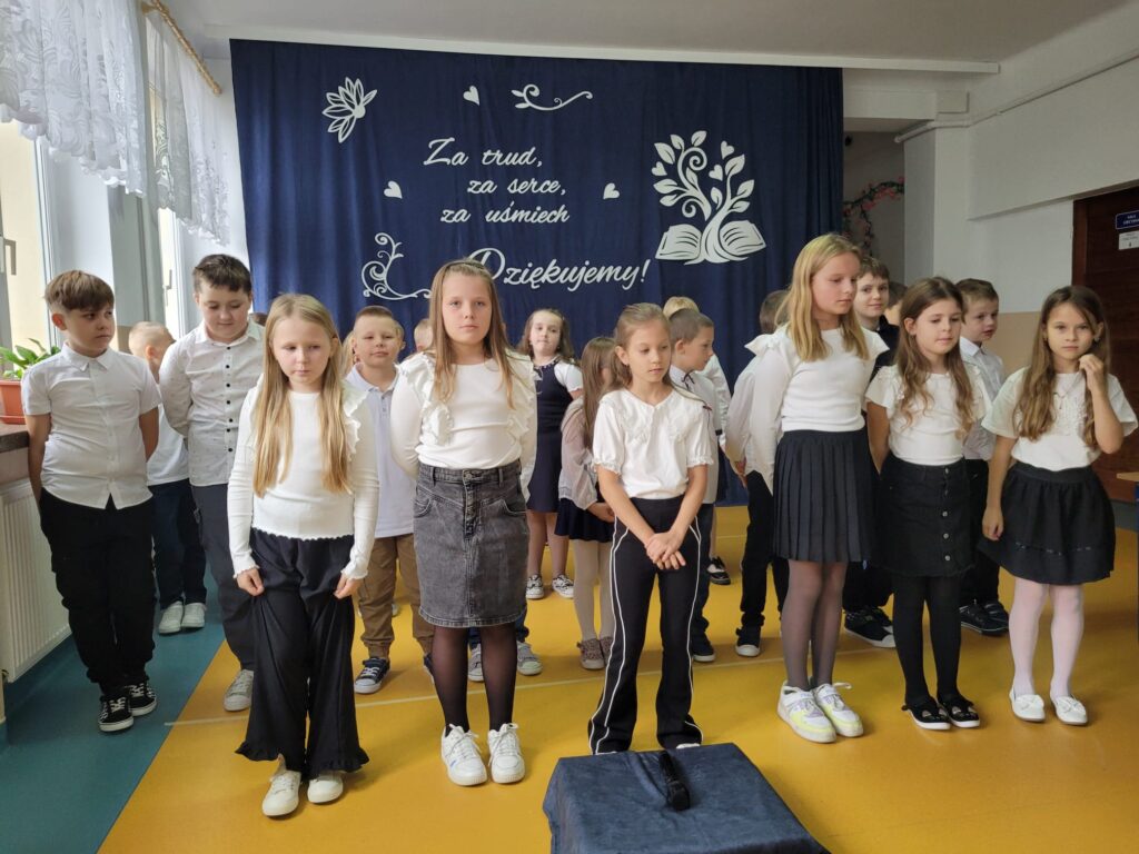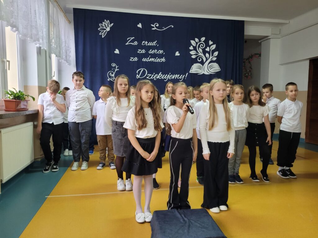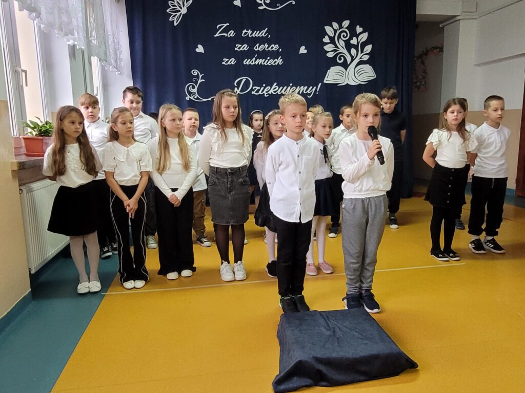 10 października 2025 roku w naszej szkole odbyła się uroczystość z okazji Dnia Edukacji Narodowej. Hasłem przewodnim spotkania były słowa „ZA TRUD, ZA SERCE, ZA UŚMIECH… DZIĘKUJEMY!”, które doskonale oddawały atmosferę wdzięczności i szacunku wobec nauczycieli oraz wszystkich pracowników szkoły. Program artystyczny został przygotowany pod opieką pań: Justyny Chmielewskiej, Kingi Michalczewskiej oraz Ilony Jędrzejczyk.