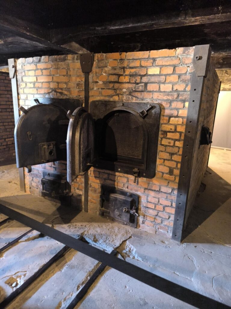 Następnie udaliśmy się do KL Birkenau (Auschwitz II) – największej części obozu. Tutaj skala zbrodni była jeszcze bardziej widoczna. Ogromny teren z barakami, wieżyczkami strażniczymi i torami kolejowymi, po których przywożono transporty więźniów, zrobił na wszystkich ogromne wrażenie. Przewodnik opowiadał o selekcjach na rampie, komorach gazowych i krematoriach, które Niemcy wysadzili przed końcem wojny, próbując zatrzeć ślady zbrodni.