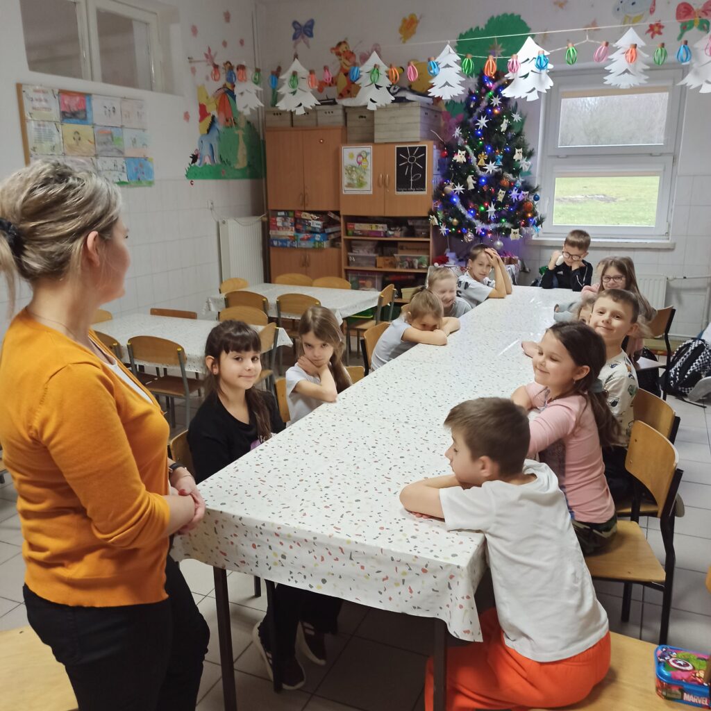 18 grudnia 2025 r. w świetlicy szkolnej odbyło się spotkanie z panią Katarzyną Jagieła pracownikiem ZPO w Stykowie. W ramach innowacji pedagogicznej „Dobre maniery na co dzień” połączone z doradztwem zawodowym pani Kasia miała przyjemność przedstawić dwa zawody, w których kiedyś pracowała (sprzedawca, kelner).